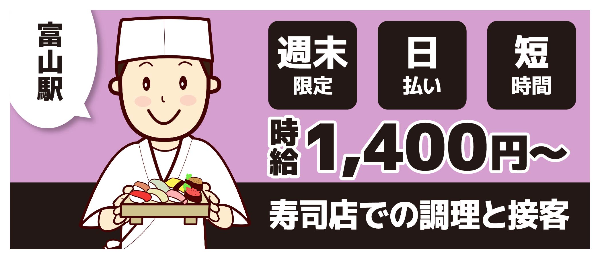 【週末限定×日払い×短時間】寿司店での調理と接客